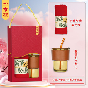 桂円紅棗茶爪包タオル竹節杯-赤