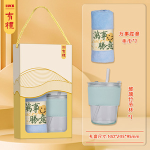 ブロックタオル手提げグラス-金