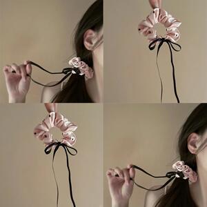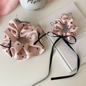 ピンクの波の点のサテンの大腸の髪の輪の蝶結びのリボンの髪の縄の超仙のバレエの風の縄の皮の筋の女性の髪のアクセサリー