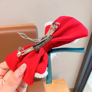 国境を越えた新しいクリスマスの蝶結びのヘアピンの赤いミンクの毛のヘアピンの祝日のパーティーの髪飾りの子供のかわいい髪飾り
