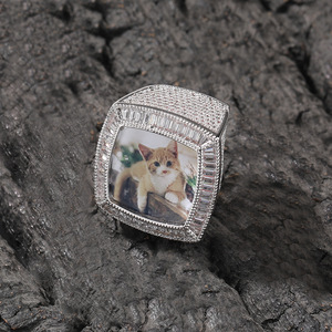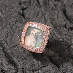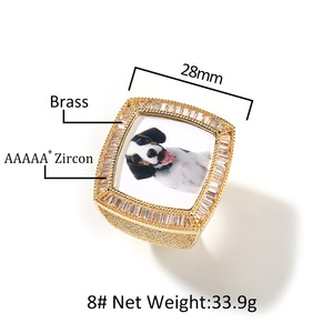 欧米の新型の創意個性DIY写真の四角の指輪のヒップホップの潮のクールな男性の銅はジルコンの高級な指輪を入れます。