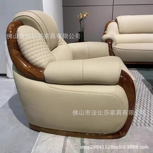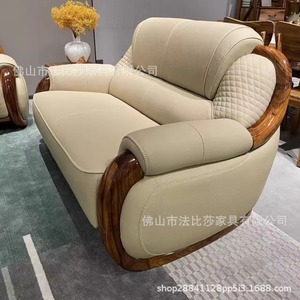 新中国式烏金木真皮ソファーは頭層牛革を厚くして現代的にシンプルで贅沢なスタイルの客間別荘である