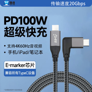 PD100Wtypecデータケーブルc-cエルボ充電ケーブルノートブック4Kスクリーン投影ハードディスクケーブル20Gbps4Kオーディオビデオ