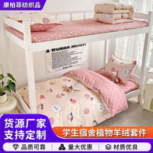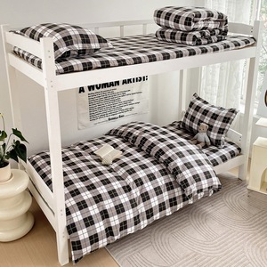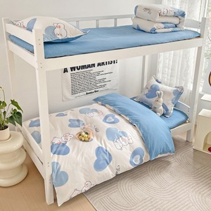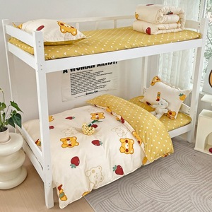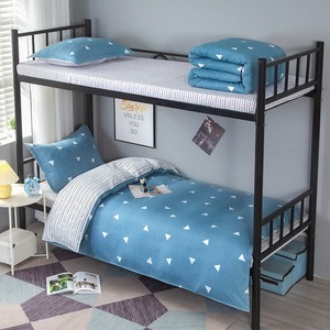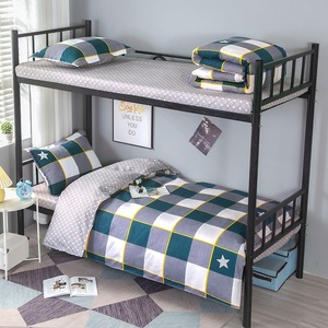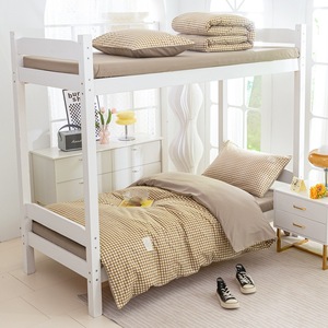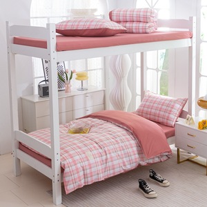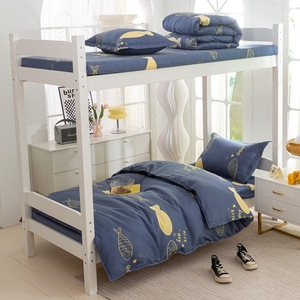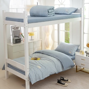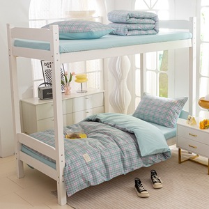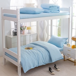 入学シーズンの学生寮のベッドには純色のシーツが3点セットで、1.2mの学生ベッド用品が上下に4点セット敷かれている