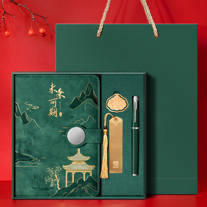【中国紅u盤五点セット】礼袋ノートu盤サインブックマーク本ボタン