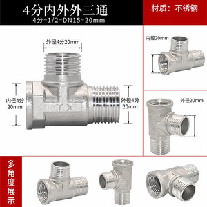 ステンレス活接三方4分ステンレス活内外活曲1/2外活三方継手部品