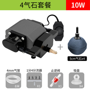 【米国規格110V】【ワイヤー制御なし】10W酸素ポンプ+エアストーン4個パッケージ