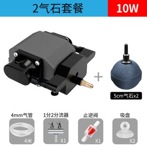 【米国規格110V】【ワイヤー制御なし】10W酸素ポンプ+エアストーン2個パッケージ