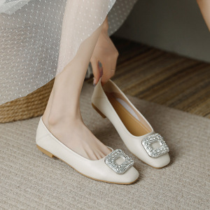 本革のドリルの角ボタンの浅い靴の女性のフランス式の柔らかい底の1足は平底の靴の女性のミルクの靴の大きいサイズの女性の瓢箪の靴を漕ぎます。
