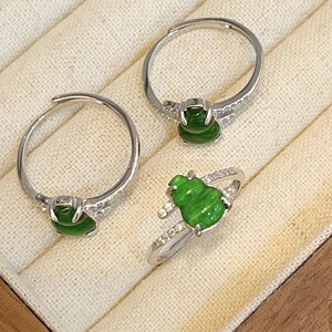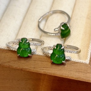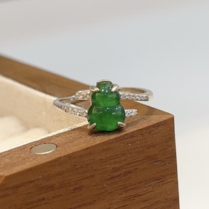 天然の翡翠の指輪の帝王の緑の陽の緑の翡翠のひょうたんの純銀の口の指輪の宝石の生放送の商品の供給源