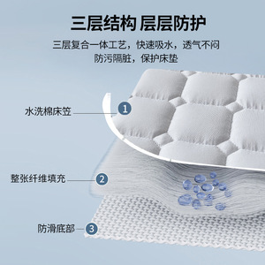四季型綿を挟んだベッド笠の夢思保護マットは汚れた滑り止めを隔てて毛を磨いて肌の学生寮のベッド笠の三点セットになっている