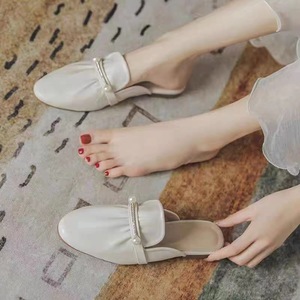 2024年 本革 バイフォールドスリッパ レディース 夏用 フレンチスタイル ヒールなし スリッポン 室内履き おしゃれ 快適