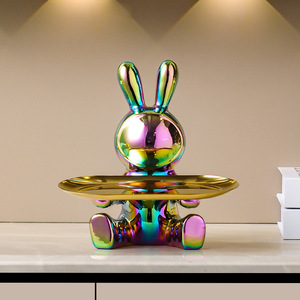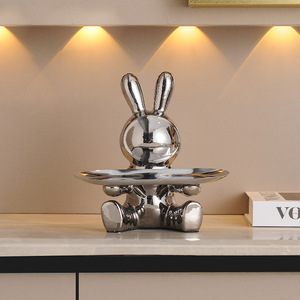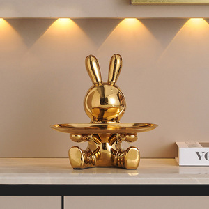 創意的な陶磁器の工芸品のウサギの置物の玄関の客間の酒の箱のテレビの棚はウサギのトレーの収納棚を飾ります。