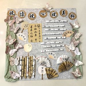 中国風幼稚園図書角配置装飾環創クラス文化テーマ壁新中国式背景書道紙