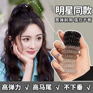シンプルなins風電話線の髪輪の女性は夏に馬尾を刺して髪のひもの高弾力のネットの皮の筋の髪飾りを傷つけません。