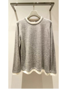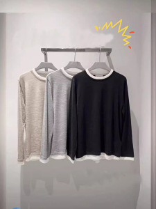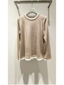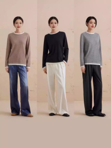 【2/60本ウール】ERD丸首偽2枚ニットtシャツ女性24早秋新商品ゆるい通勤ジャケット