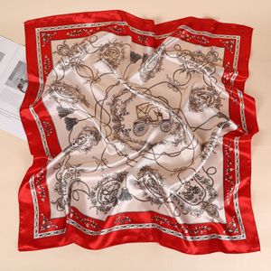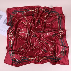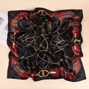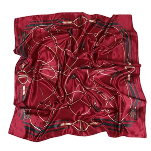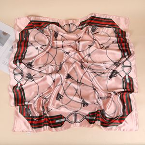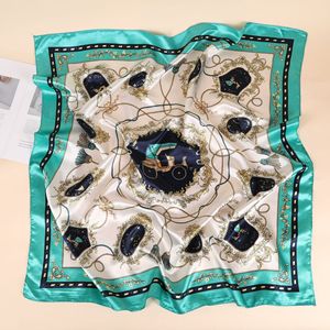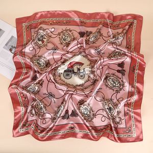 跨境法式浪漫马车图案丝巾印花骏马缎面欧美复古色丁方巾链条元素