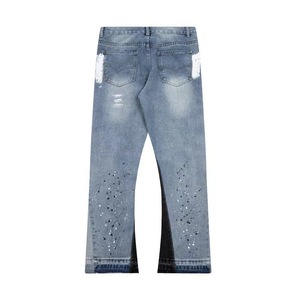 2024アメリカ式潮牌破穴ステッチグラデーション塗装ジーンズ男高街広脚微拉ズボンクロスボーダー