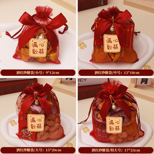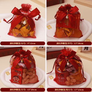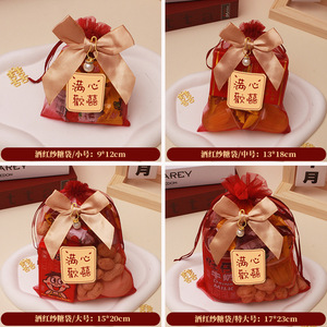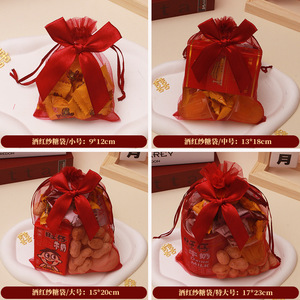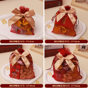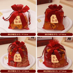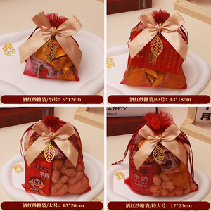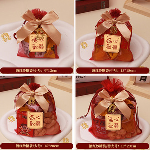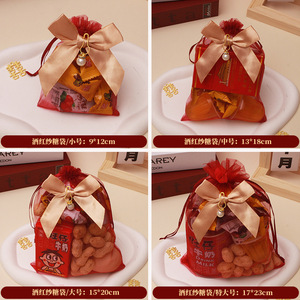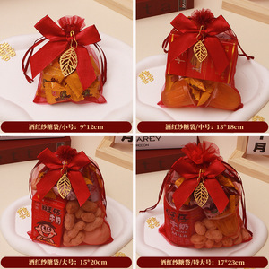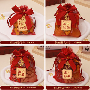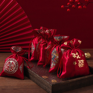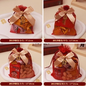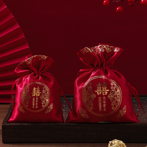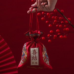 結婚喜糖袋結婚式サテン印刷砂糖袋ネット赤糖果袋お土産高級手提げ喜糖袋卸売り
