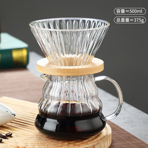 日本都耐熱ガラスストライプコーヒーポット雲壺カップ竹托コーヒーポットセット新品コーヒーポット