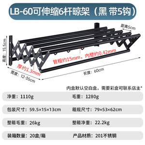 LB-60伸縮可能6竿干しラック (黒帯5フック)