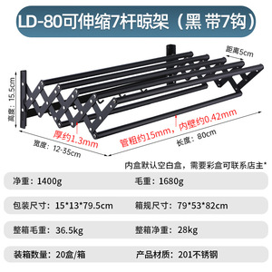 LD-80伸縮可能7竿干しラック (黒帯7フック)