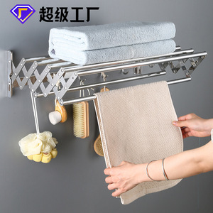 ステンレス伸縮タオル掛け浴室折り畳み可能トイレ壁掛け収納棚ベランダハンガー