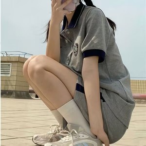 スポーツスーツ女性の夏の少女の日の学院の風のゆったりしたpoloシャツの半袖の半ズボンのカジュアルな2つのセットの婦人服