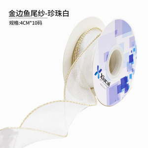 シンプル金縁フィッシュテールヤーン(オフホワイト) 4cm10ヤード フィッシュテールヤーン