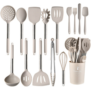 鋭い銘のアマゾンの3色の14セットのステンレスの柄のシリカゲルの料理道具は鍋の調理の料理道具のシャベルの組み合わせにくっつきません。