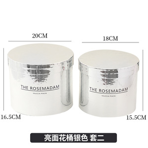 光沢のあるフラワーバケツ(シルバー) 大1個、小1個、ハグバケツ