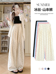 H572波点氷糸山本ズボン女性夏の薄いタイプの新型高腰垂感の小さい白いカジュアルなワイドパンツ