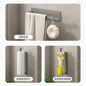 ロールペーパーホルダー磁気吸引金穴なし貼り付けラップタオルフック収納棚物置棚厨房収納神器