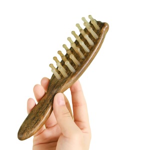 牛の角の櫛のクランクの歯を挿して頭皮の家庭のブラシをマッサージします。