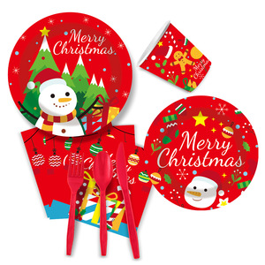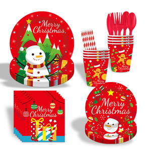 クロスボーダークリスマスパーティー食器クリスマス雪だるまテーマ祭りアレンジ装飾使い捨て紙コップ紙皿セット