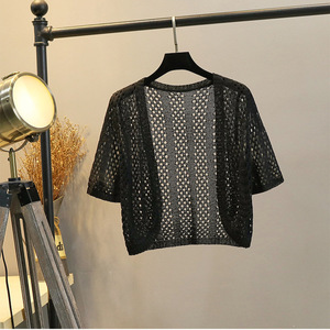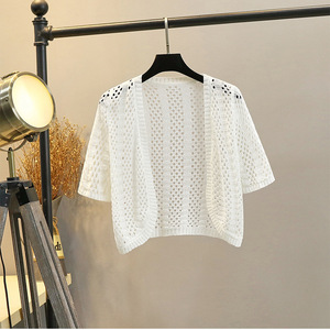 ファッションの新しい透かし編みの半袖のカーディガンの薄いタイプの女性のショールの夏のデザイン感の外は日焼け止めのブラウスのカンタンを掛けます。