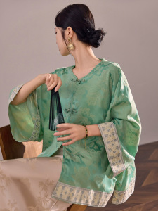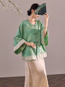 国風新中国式新モデル2024春プリントシャツレトロ名媛気質ファッションゆるい上着m 5007