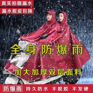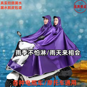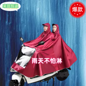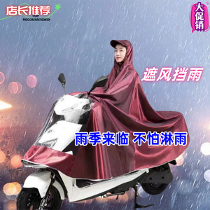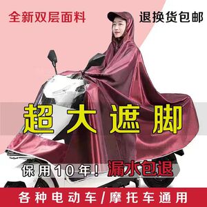 オートバイの電気自動車のレインコートを羽織っています。女性は足を遮ります。