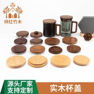 黒胡桃木カップ蓋創意原木ガラスカップ蓋シンプルで耐久性のある高ホウ素カップ蓋通用型茶カップ蓋