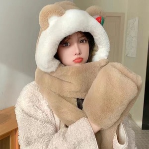 冬の三点セットかわいいいちご熊耳スカーフ帽子防寒保温包頭帽子女性冬保温手袋