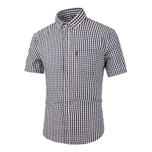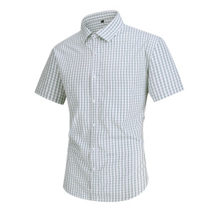 クロスボーダー男服夏格子シャツ男高級感シャツ通気性半袖カジュアル修身上着綿シャツコート