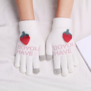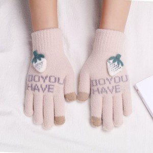 2024新型ニットアニメのぬいぐるみ防寒いちごタッチパネル女性冬保温ベルベットは学生のアクセサリー手袋を厚くした
