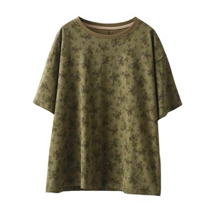 文芸レトロ丸首半袖純綿tシャツ女性夏の新作ファッション