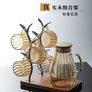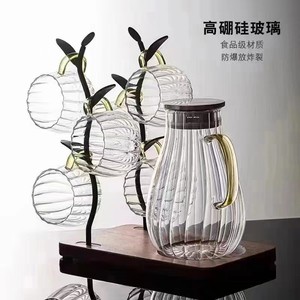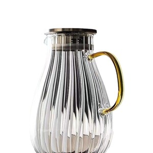 琥珀色の冷たい水筒セットは、高ホウ素シリコンガラスの耐熱縦縞の冷たい水筒ステンレスカバーの水筒を厚くします。