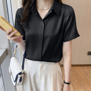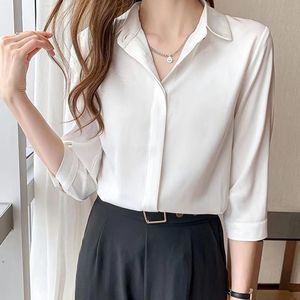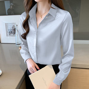 杭州のシルクのシャツの女性の長袖の春秋服の新型の绢糸の上着の白い職業は底のシャツの女性を詰めます。