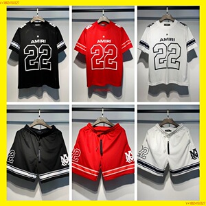 amiri24 新しい半袖 T シャツ番号 22 ジャージサッカーユニフォームメッシュスポーツカジュアルショーツカップルセット