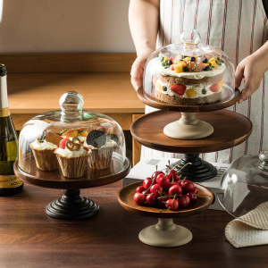透明防塵ガラス蓋付き高脚ケーキトレイ、パントレイ、フルーツサンプルトレイ、デザートディスプレイトレイ、フルーツトレイ、果物と野菜用