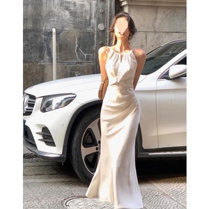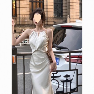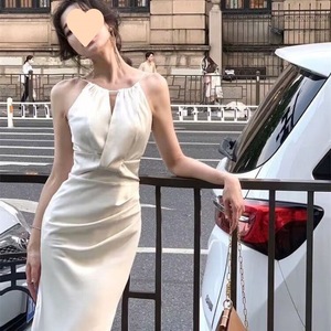 フランス酢酸サテンワンピース女性夏気質高級感誕生日プレゼントスカート白い領収書高級ドレス
