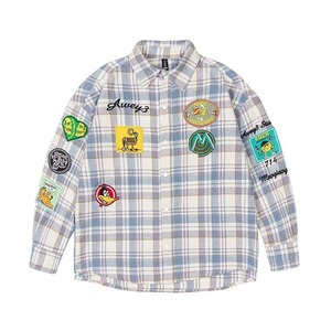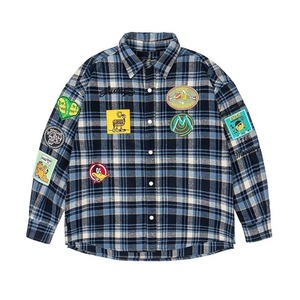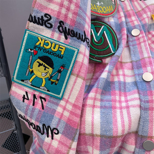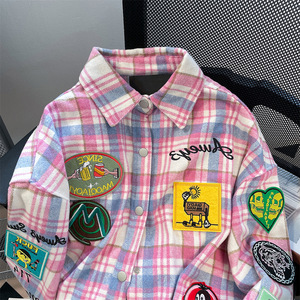 アメリカンレトロ高級感磨毛格子シャツコート男女秋冬香港風工装刺繍厚手シャツ