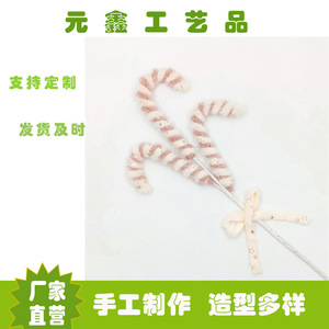 メーカー直送 クリスマスデコレーション クリスマスフラワー クリスマスの枝 ピンクと白のリボン付き バタフライリボン付き ロリポップ 手作り